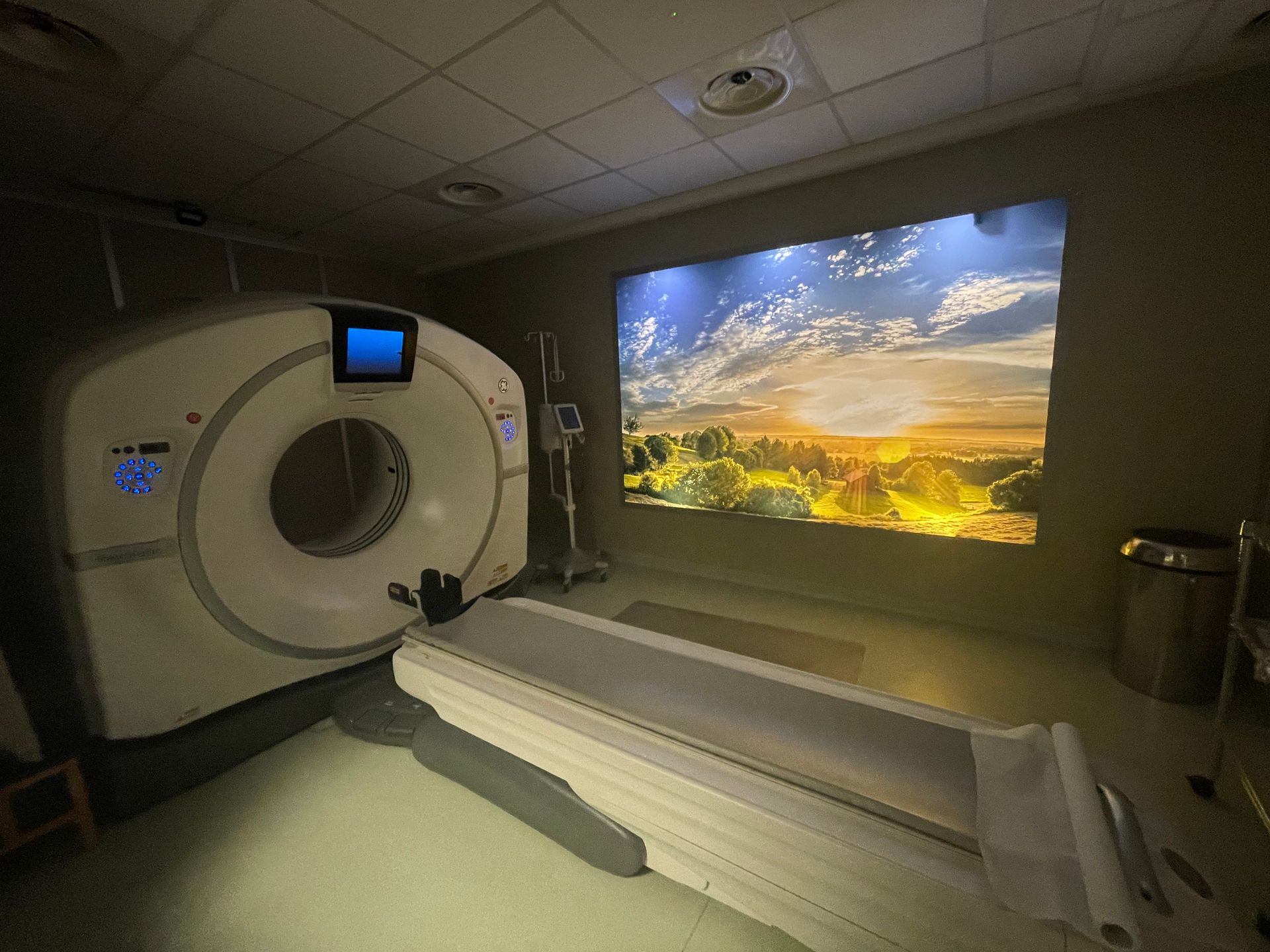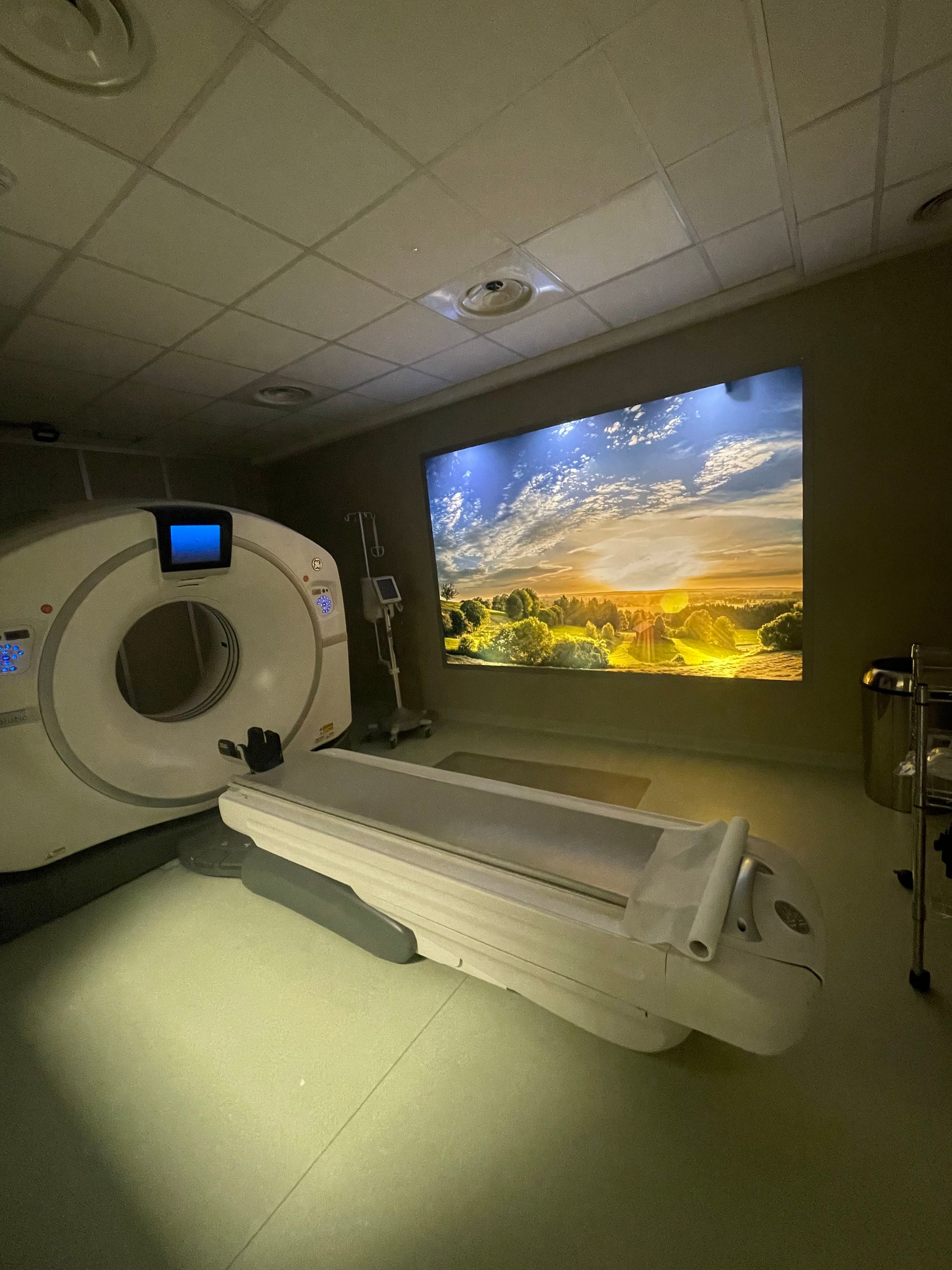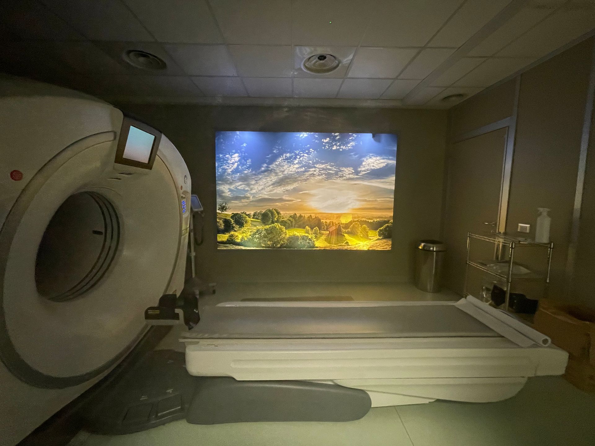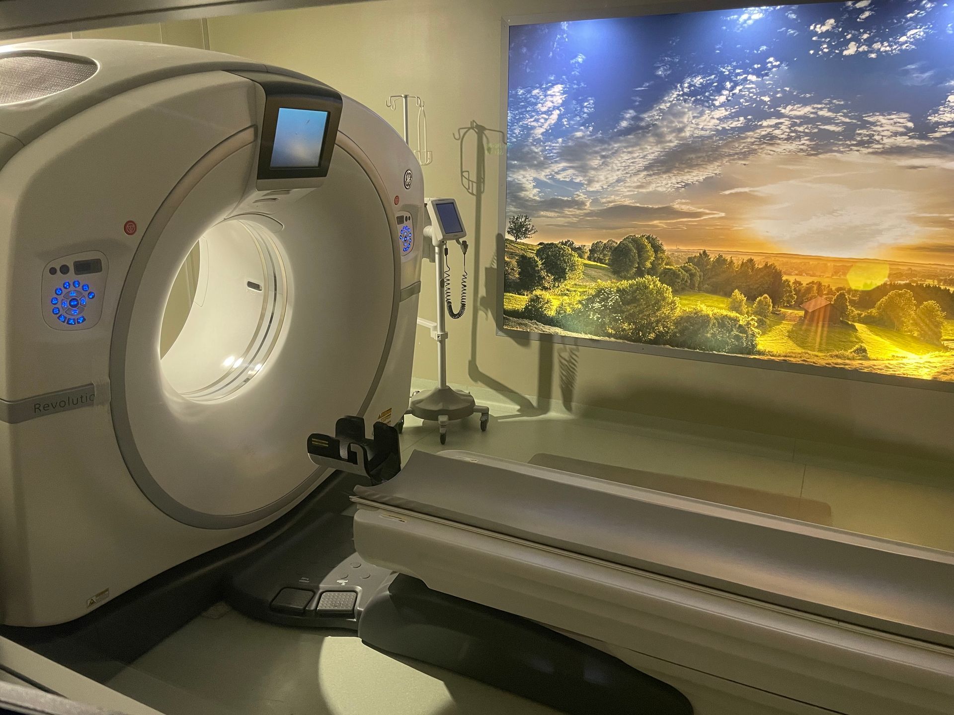 Un pannello di “umanizzazione” posto nella diagnostica e raffigurante un suggestivo paesaggio, rilassa il paziente favorendo l’esecuzione dell’esame in completo relax. La tecnica di ricostruzione iterativa ASIR, di cui è fornito il sistema, è progettata per ridurre i livelli di rumore e le tecnologie di cui è dotato, consentono di garantire livelli bassi di radiazioni ed immagini diagnostiche di qualità.